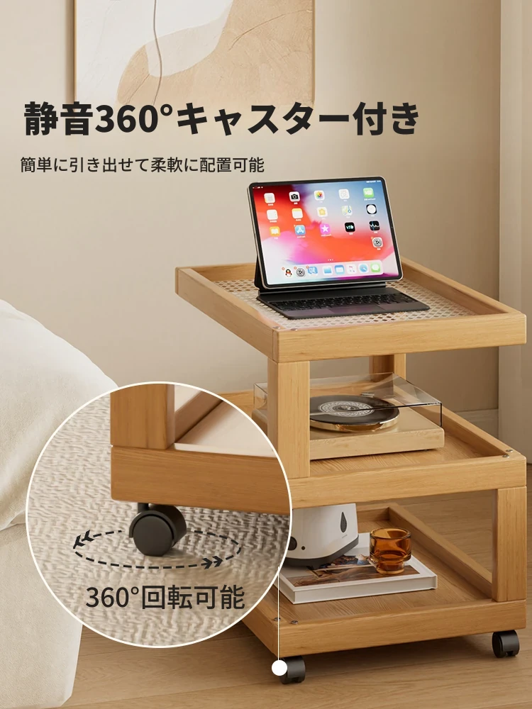 可動式サイドテーブル - リビング、バルコニー、ベッドサイドに最適!小型ティーテーブルや収納ラックとしても使える便利なサイドテーブル。おしゃれで機能的、スペースを有効活用します!