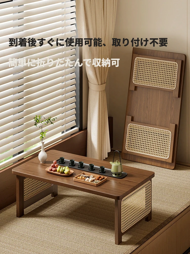 おしゃれな折りたたみ式和風ローテーブル!リビングやバルコニーにぴったりのコンパクトデザイン。小さなお部屋にも最適な、座って使える畳テーブルで、くつろぎのひとときを演出します。
