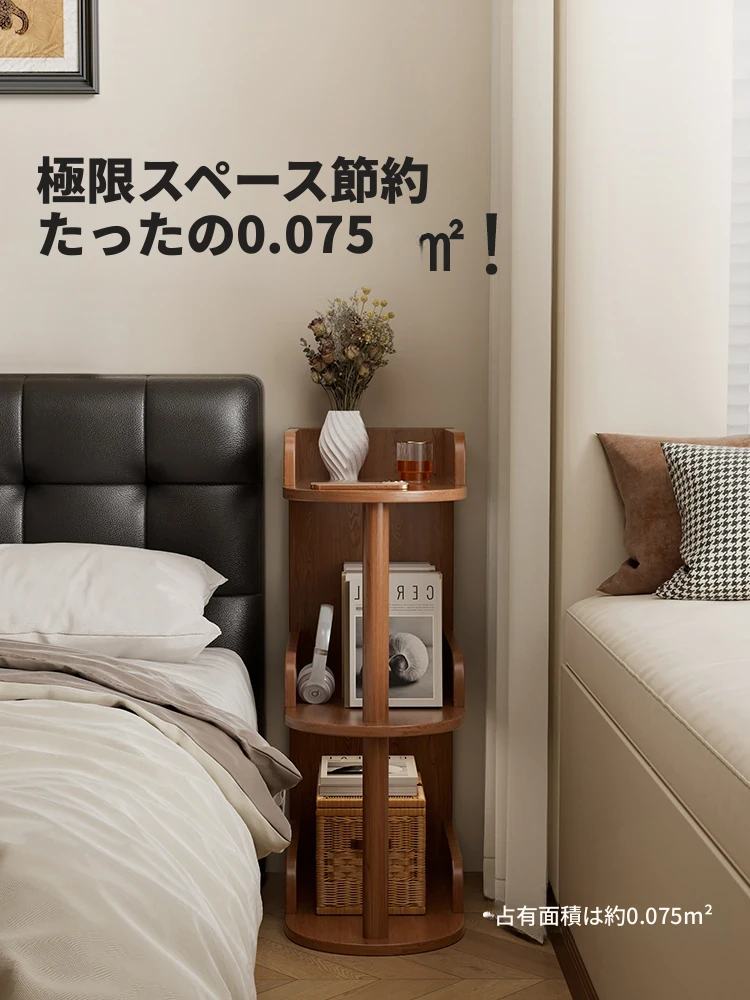 省スペース!おしゃれな実木製サイドテーブル - 小型住宅に最適な狭い角にぴったりフィットする収納ラックとコーヒーテーブル。リビングルームをスタイリッシュに演出!