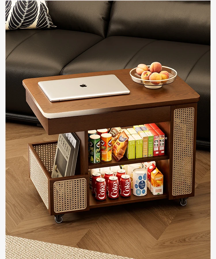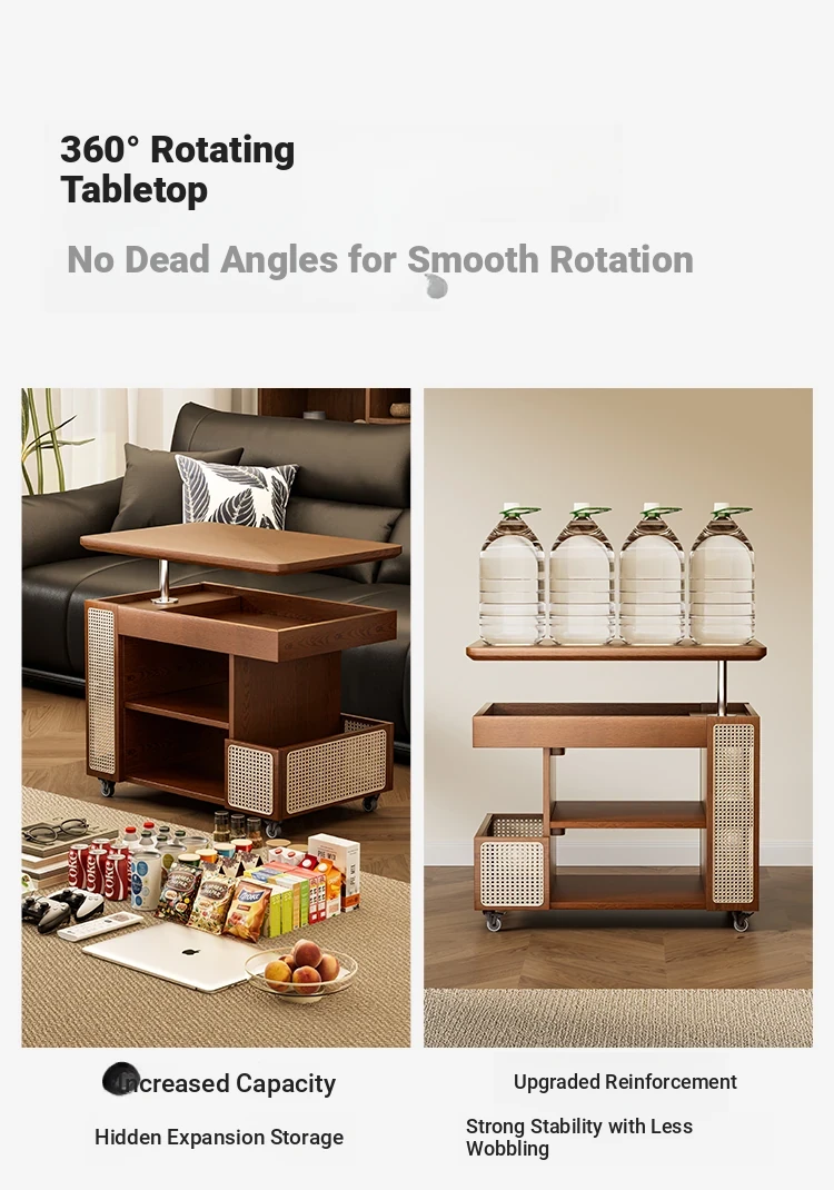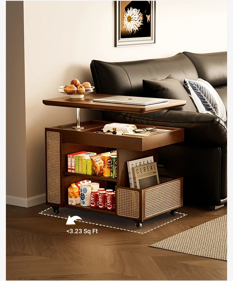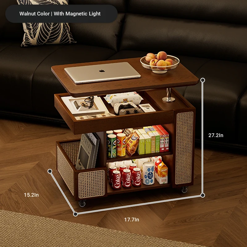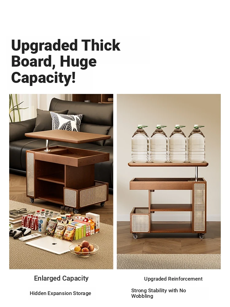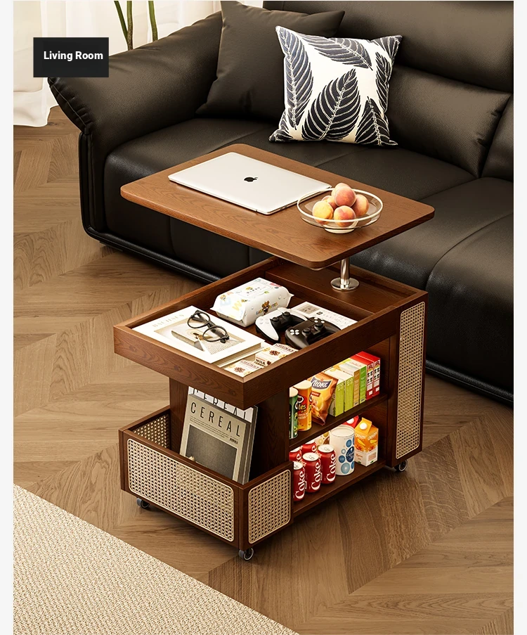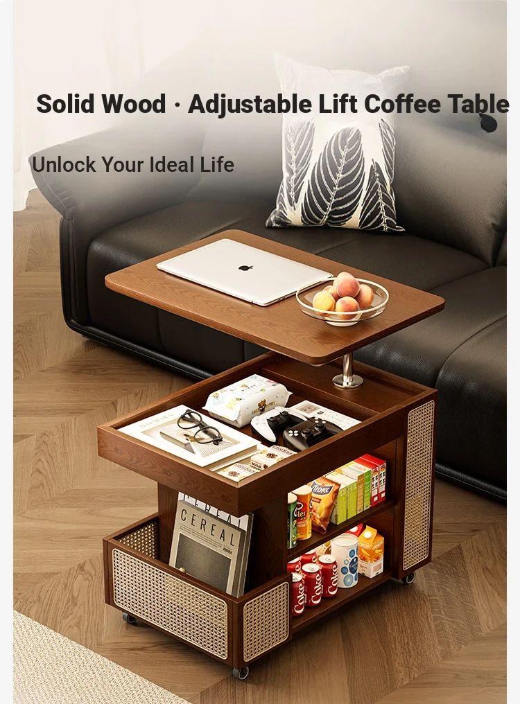 Elevate Your Space: Adjustable Solid Wood Mobile Coffee Table for Small Apartments - Versatile Side Cabinet & Sofa Table, Perfect for Living Room and Home Use