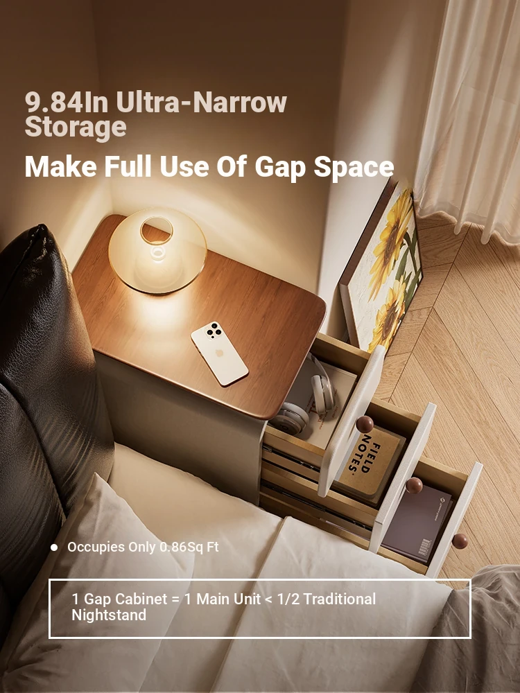 2025 New Compact Solid Wood Nightstand - Ultra-Slim Bedroom Storage Cabinet in Vintage Cream Style, Perfect for Small Spaces
