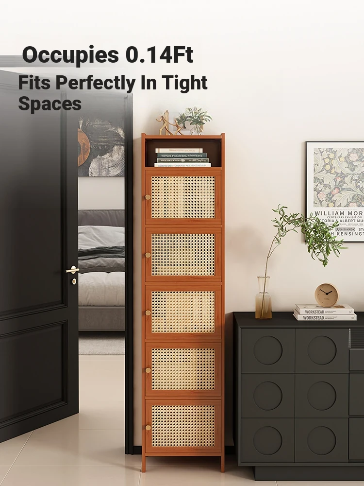 Vintage Rattan Corner Shelf - Stylish Narrow Cabinet for Books and Decor, Perfect for Living Room or Bedroom - Space-saving Corner Storage Solution