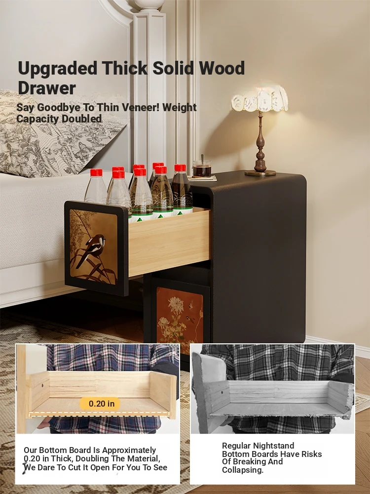 2025 New Minimalist Italian Style Solid Wood Nightstand - Chic Luxury Storage Cabinet for Home Bedroom, Compact Design for Easy Organization
