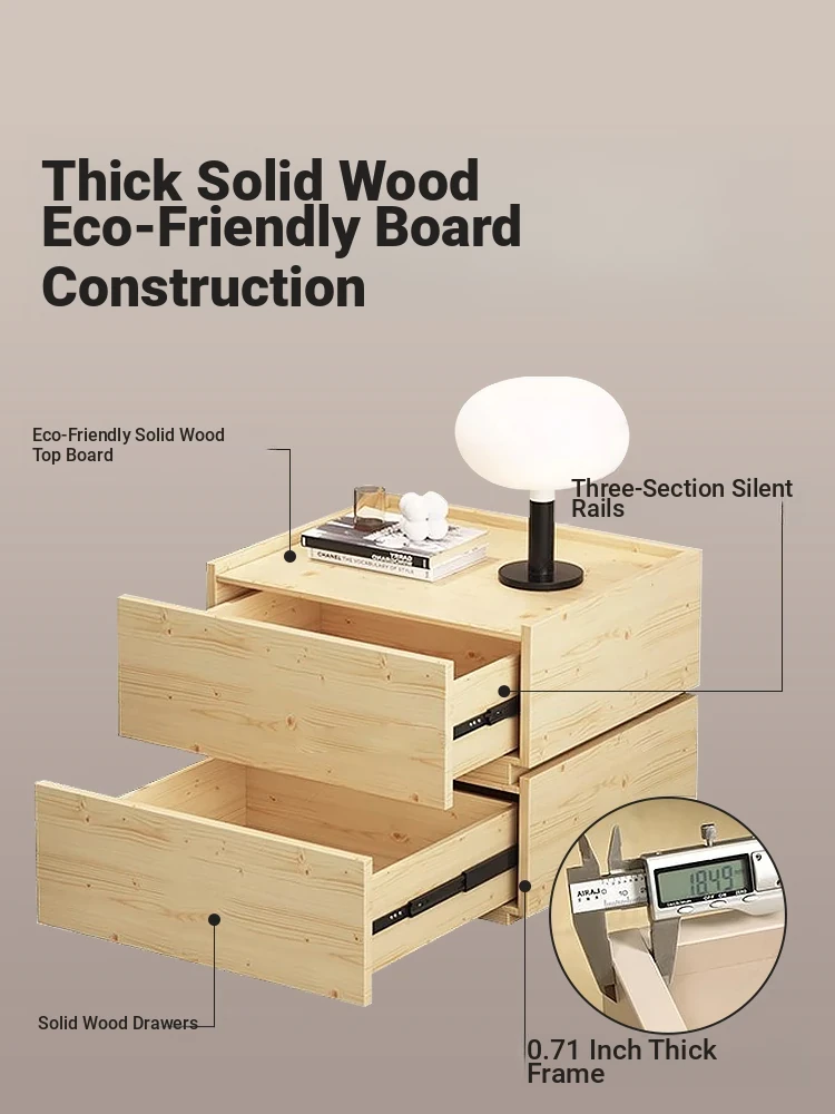 Modern Minimalist Solid Wood Nightstand - Compact Luxury Bedside Storage Cabinet for Bedroom 2025 New Arrival