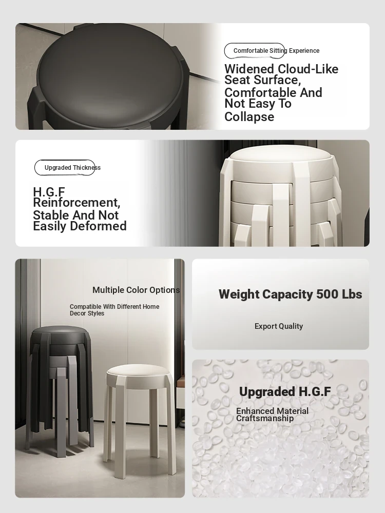 Stylish Thickened Plastic Stool for Home Use - Premium Quality Stackable Round Ottoman for Living Room Guests, Soft-Padded Design, Space-Saving Solution