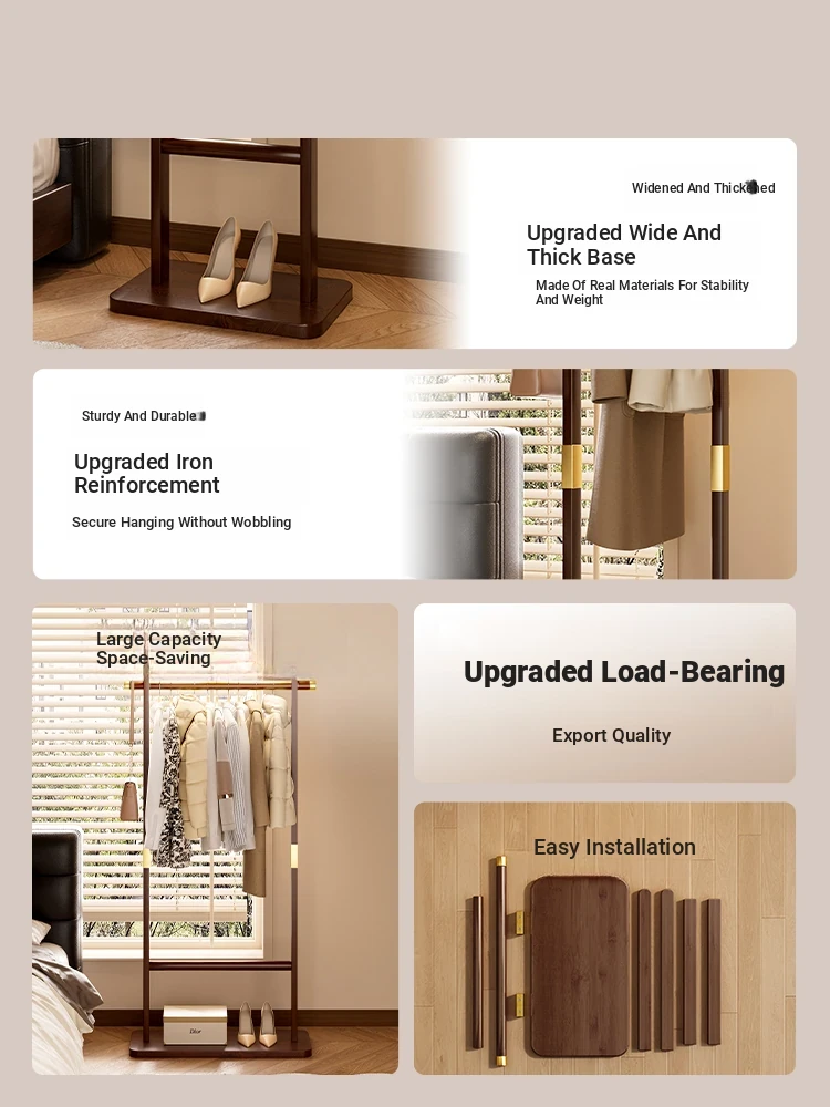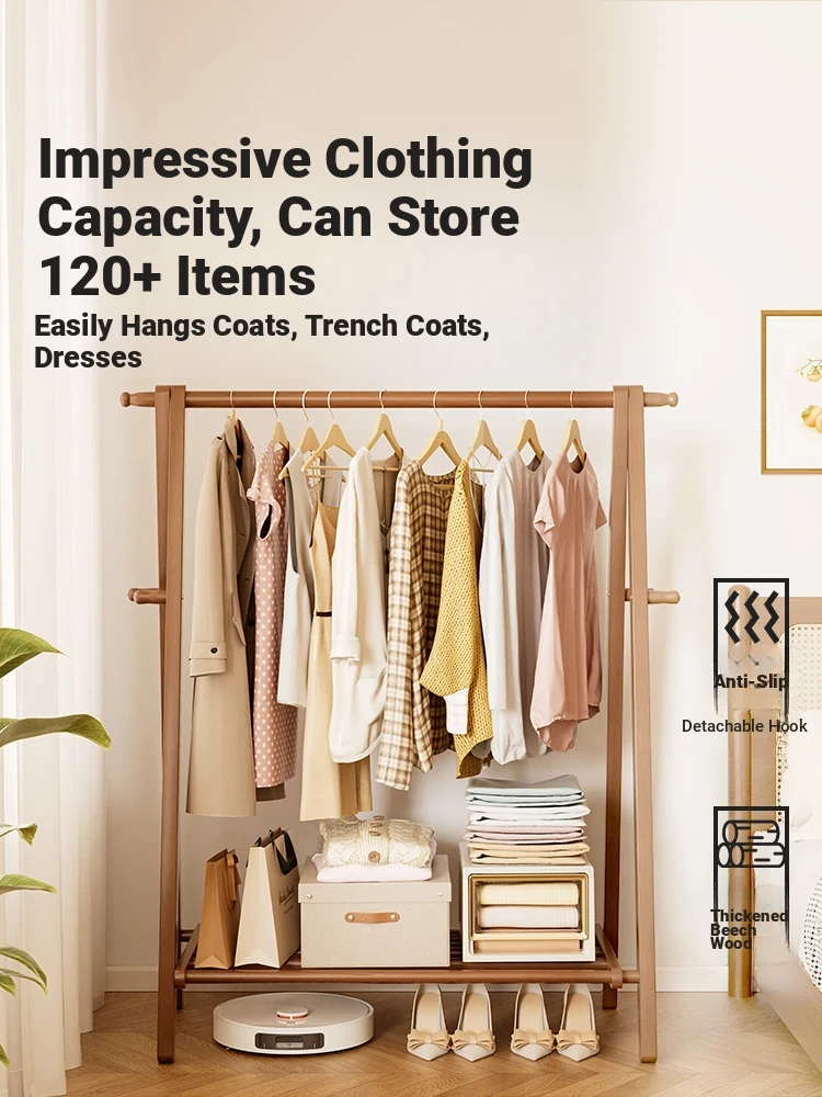 Solid Wood Freestanding Coat Rack for Home - Minimalist Style Bedroom Storage Organizer, Indoor Foldable Clothes Drying Stand and Hat Rack
