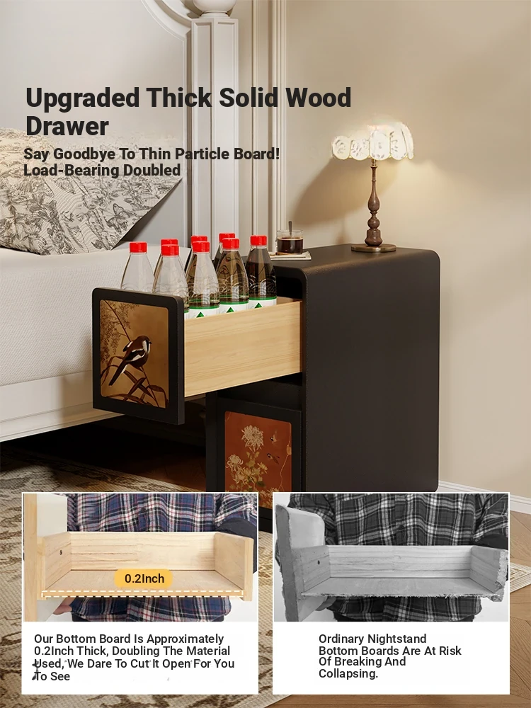 Vintage Cream Nightstand - Ultra-Slim Solid Wood Bedside Cabinet for Home Bedroom, 2025 New Model - Perfect Space-Saving Storage Solution!