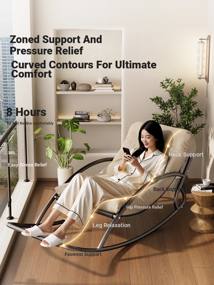Folding Recliner Chair for Seniors - Comfortable Home Lounge Rocking Chair for Adults, Perfect for Napping on the Balcony, Adjustable Backrest for Sitting or Lying Down