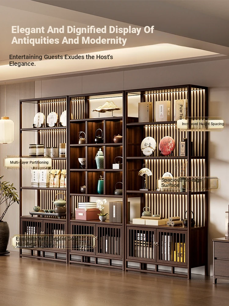 Modern Minimalist Solid Wood Display Cabinet - Stylish Tea Room Partition and Storage Shelf for Tea Accessories and Decor Items