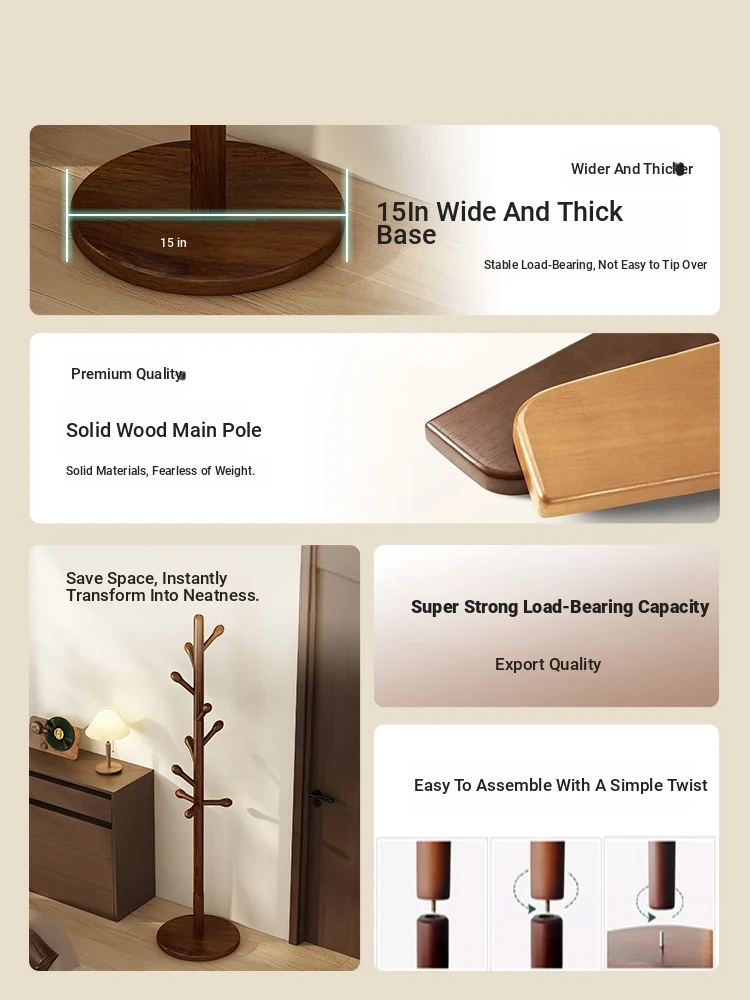 Stylish Solid Wood Freestanding Clothes Rack for Bedroom and Living Room – Perfect for Hanging Coats, Hats, and Evening Outfits – Ideal Home Organizer for Entryway and Beside Bed