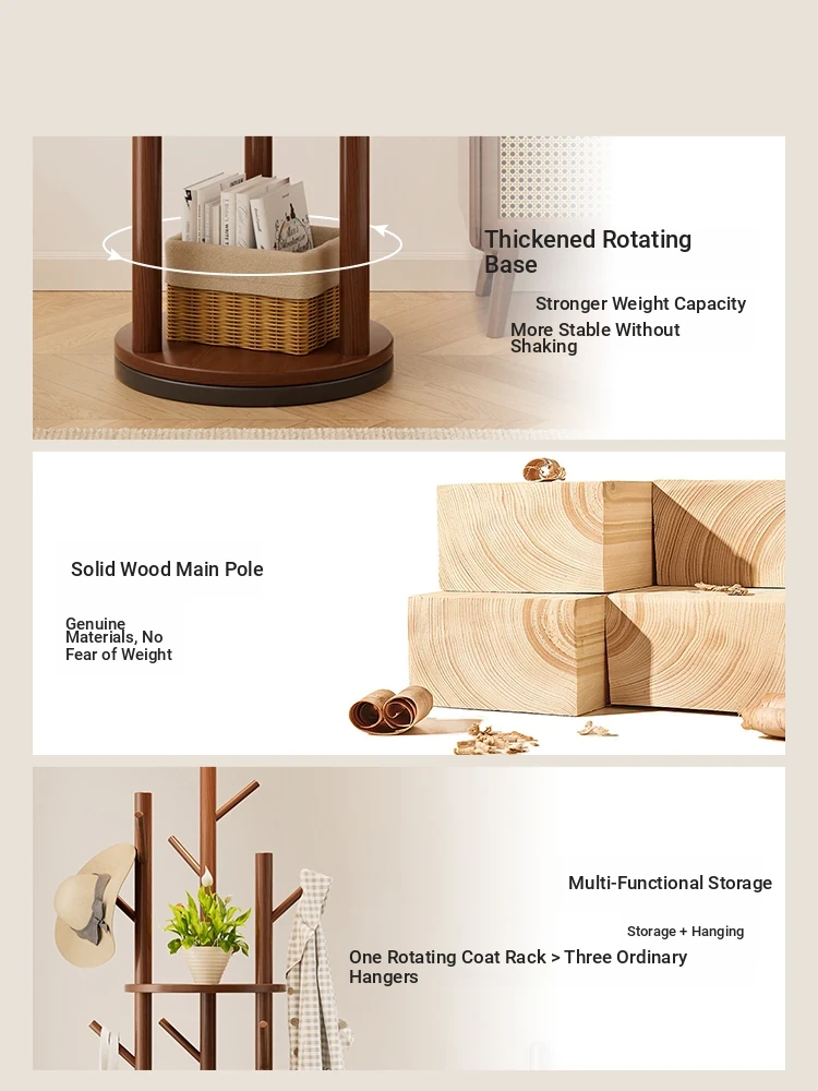 Solid Wood Freestanding Clothes Rack - Multi-Functional Coat Stand for Bedroom or Entryway, Space-Saving Design Perfect for Small Rooms or Bedside Use