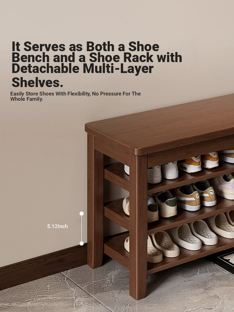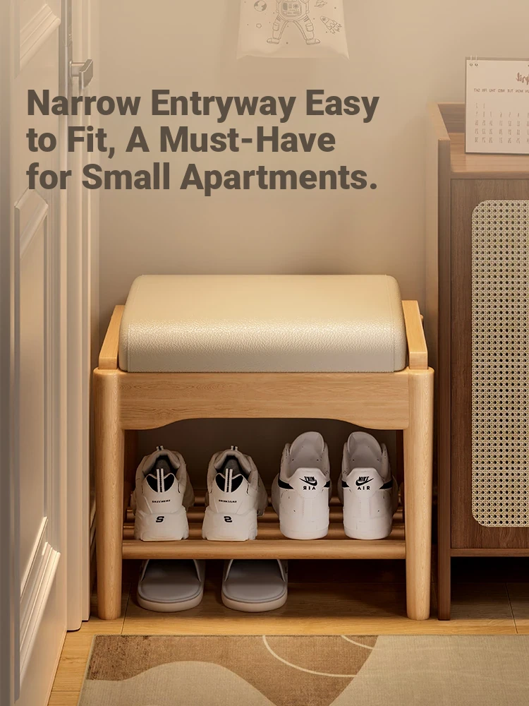 Solid Wood Shoe Bench - Compact Entryway Seat with Storage for Shoes, Perfect for Narrow Spaces, Ideal for Dressing Rooms and Entry Halls, Stylish and Functional Shoe Cabinet