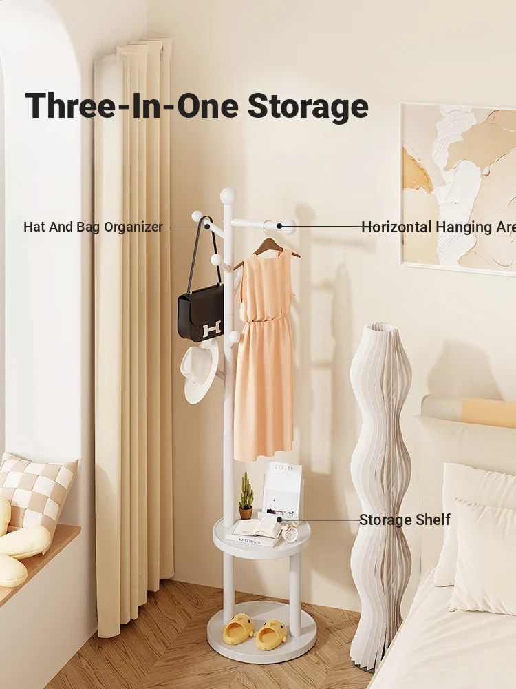 Creamy Wind Floor Clothes Rack - Space-Saving Hanging Organizer for Bedroom, Perfect for Nighttime Outfit Changes, Portable Coat Stand for Entryway.