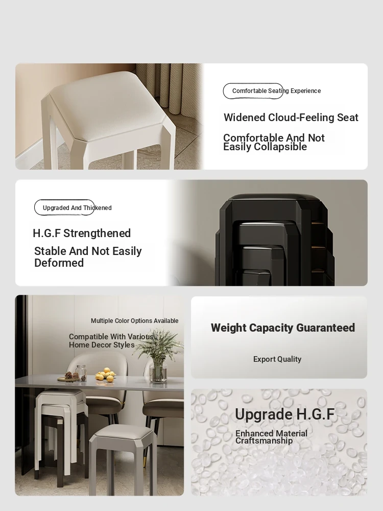 Durable Soft Cushion Plastic Stool for Home Use – Stackable Low Ottoman for Living Room and Coffee Table, Comfortable for Long Sitting, Perfect Kids' Bench