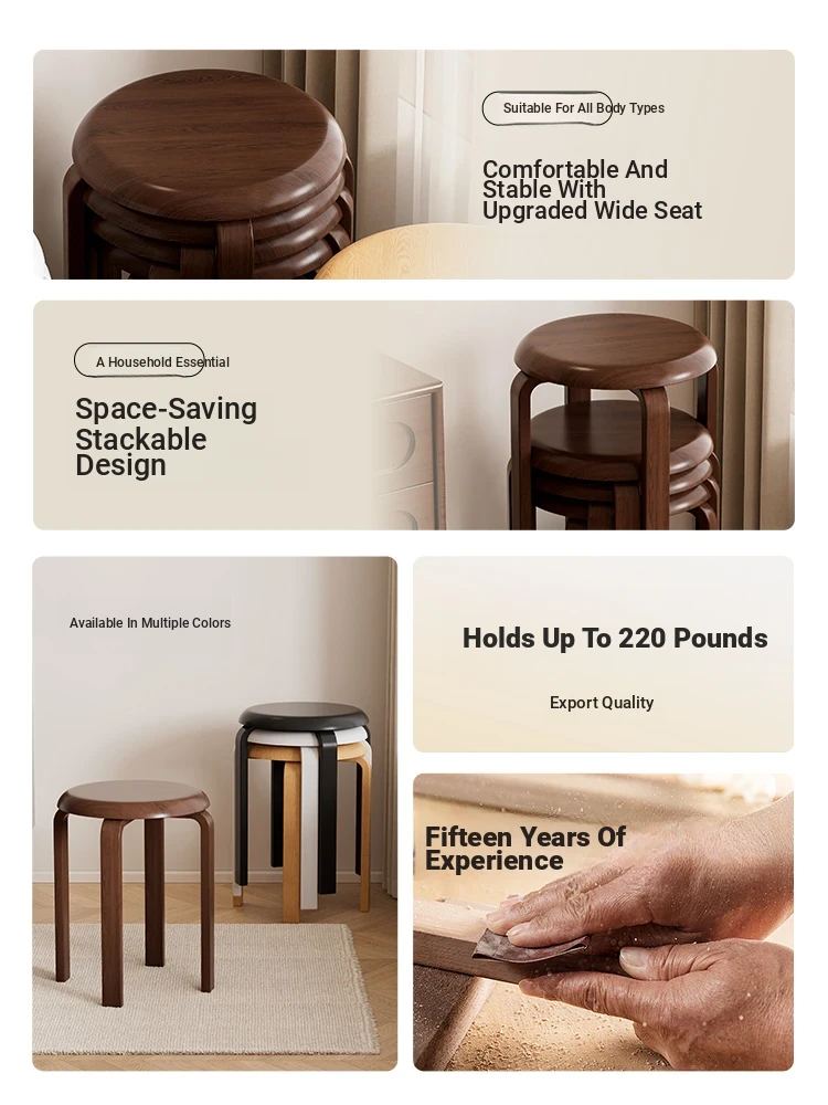 Solid Wood Round Stool - Minimalist Design for Home Use, Stackable Low Stool for Living Room and Dining Table, Perfect for Small Spaces