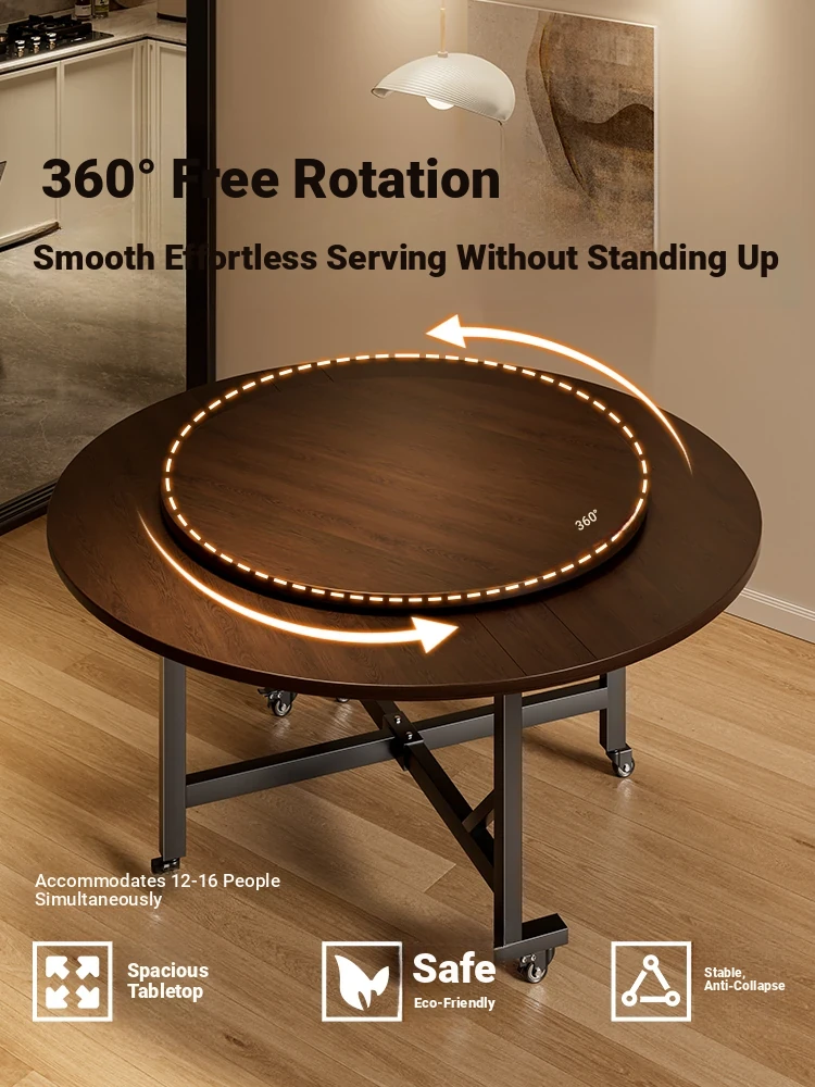 New Foldable Round Dining Table for Home - Accommodates 12 to 15 People with Rotating Turntable - Perfect for Family Gatherings and Entertaining!