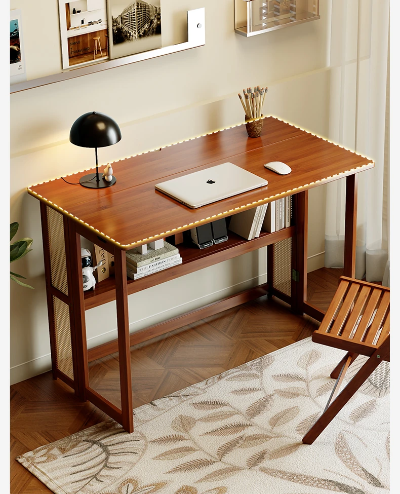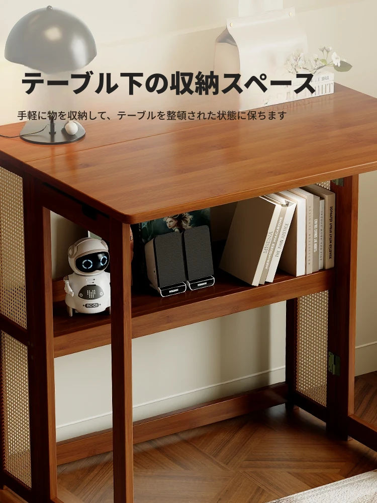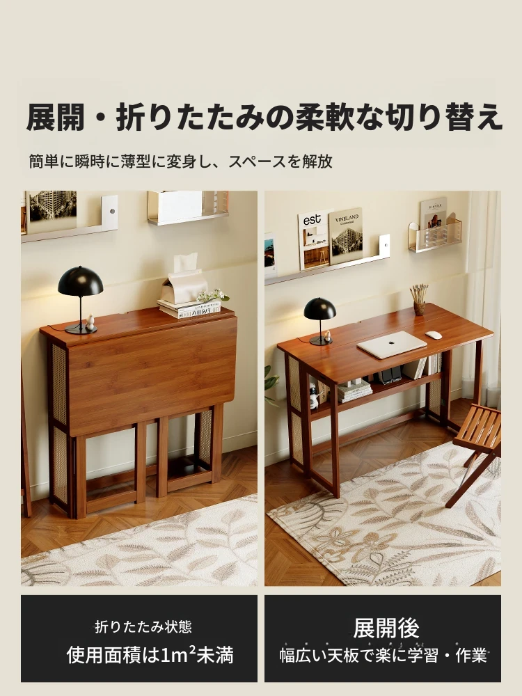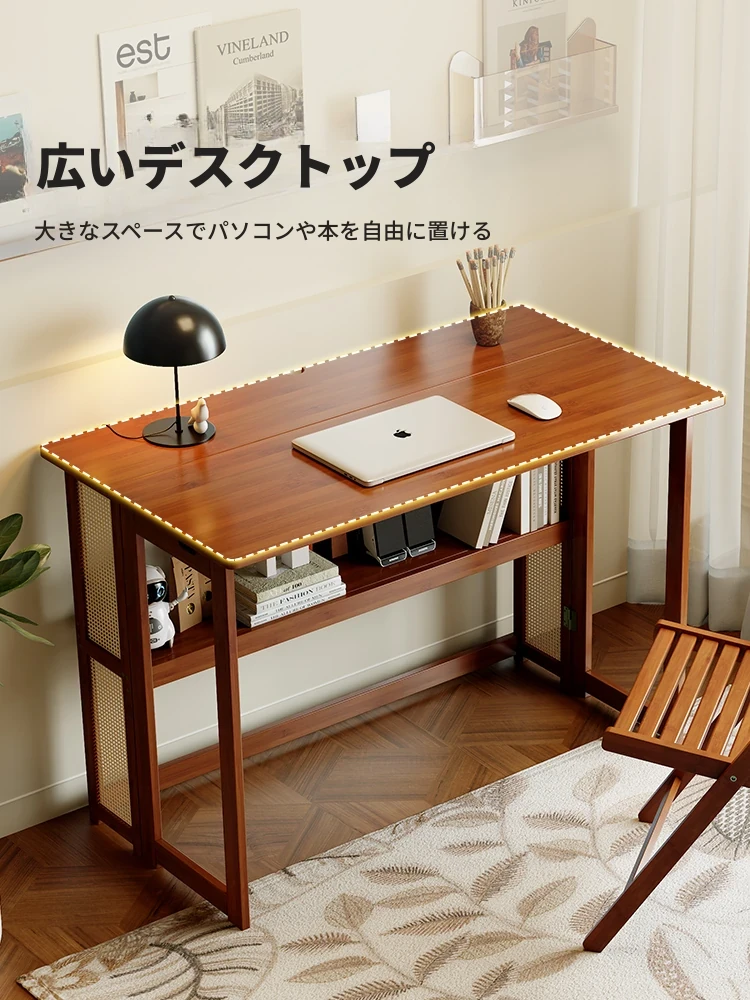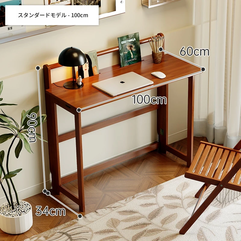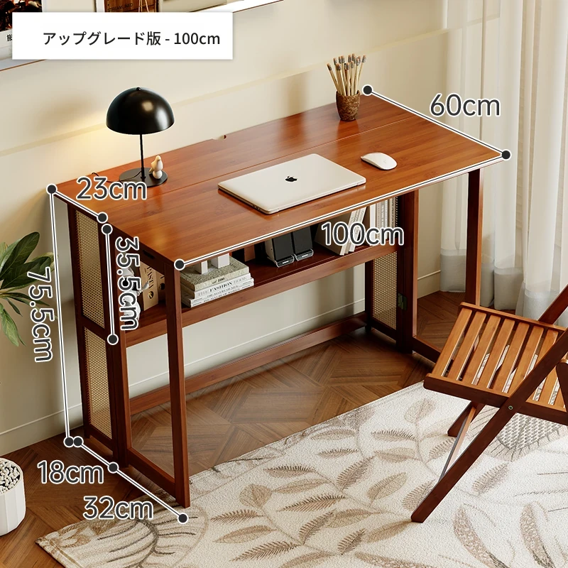 【アップグレードモデル】100CM折りたたみデスク(収納棚付き)-ウォールナット色【厳選素材 ✅厚手サポート】