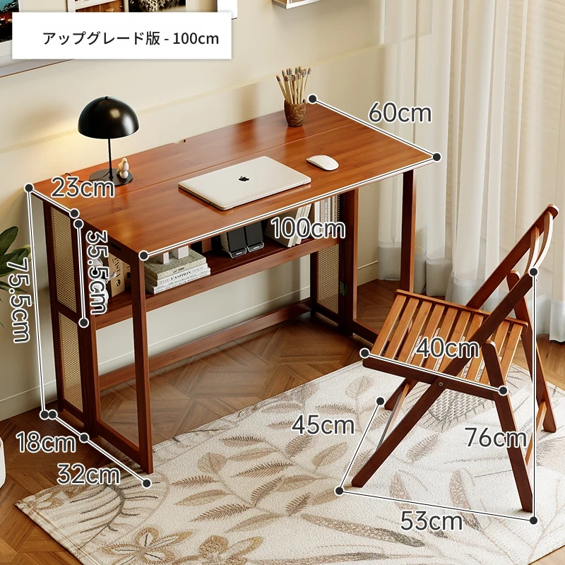 【アップグレードモデル】100CM折りたたみデスク(収納棚付き)+椅子-ウォールナット色【厳選素材 ✅厚手サポート】