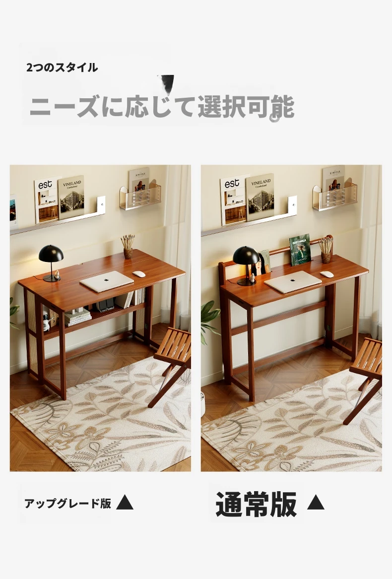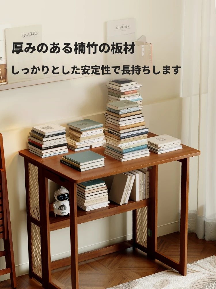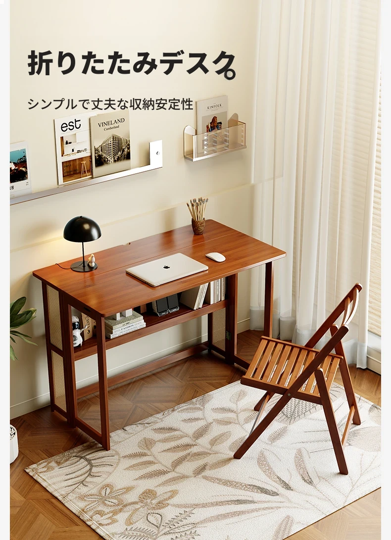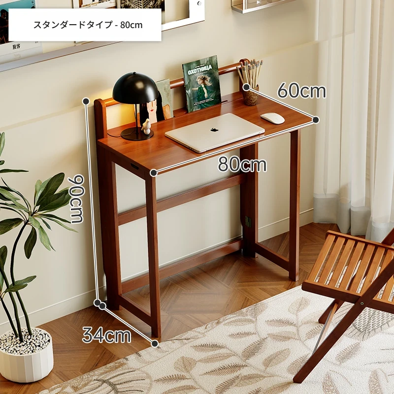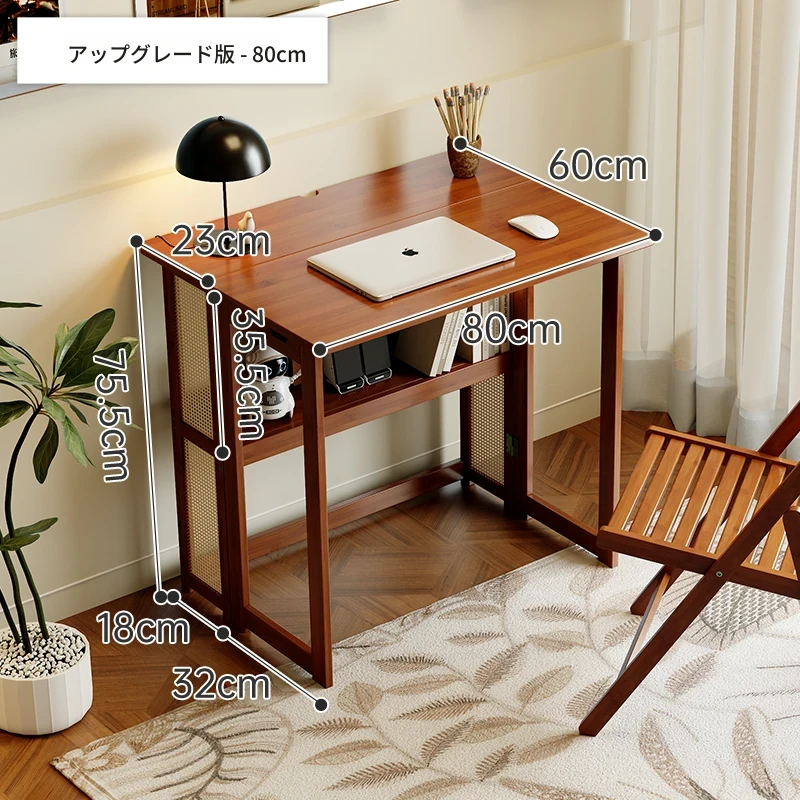 【アップグレードモデル】80CM折りたたみデスク(収納棚付き)-ウォールナット色【厳選素材 ✅厚手サポート】