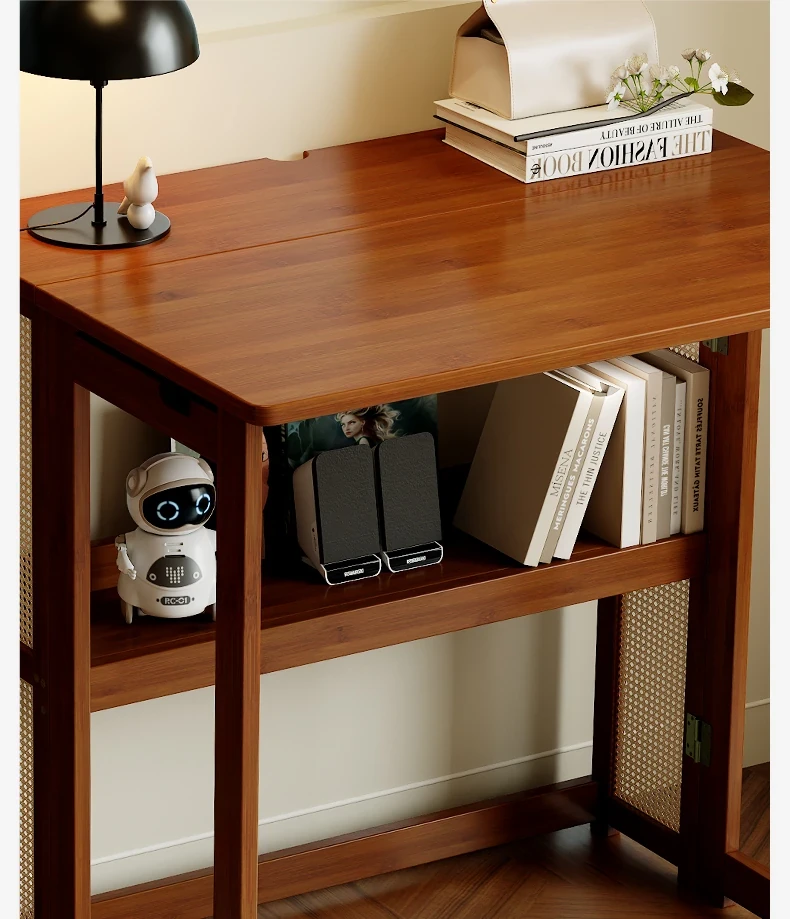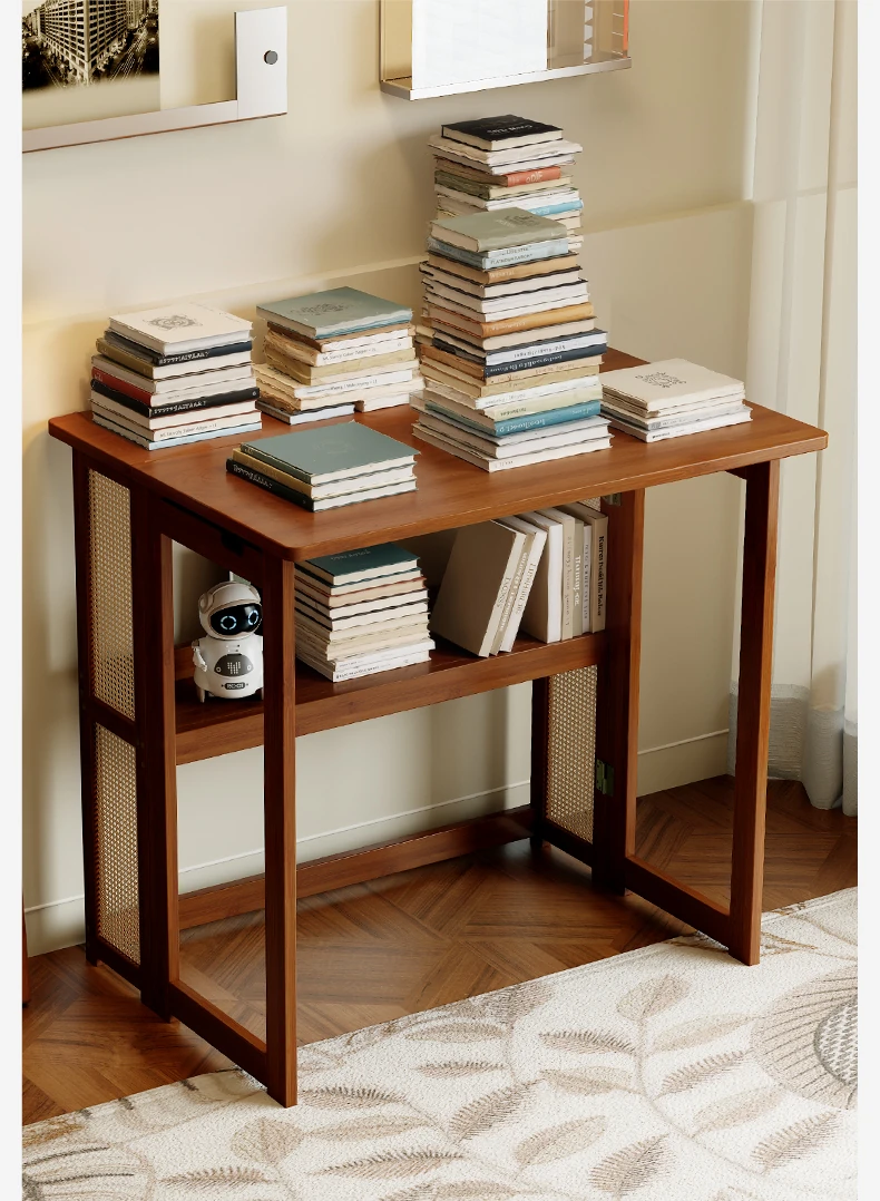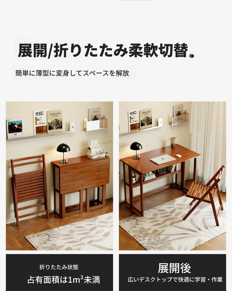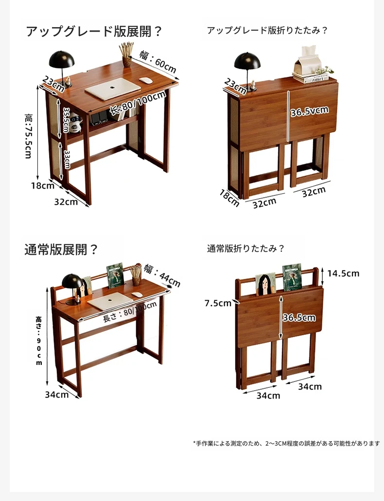 【アップグレードモデル】80CM折りたたみデスク(収納棚付き)-ウォールナット色【厳選素材 ✅厚手サポート】