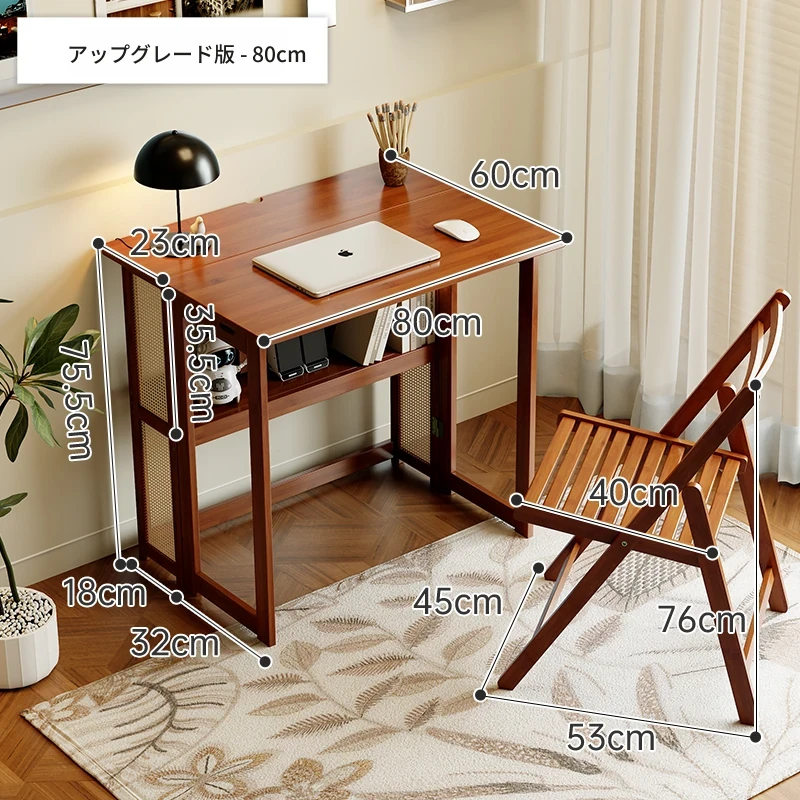 【アップグレードモデル】80CM折りたたみデスク(収納棚付き)+椅子-ウォールナット色【厳選素材 ✅厚手サポート】