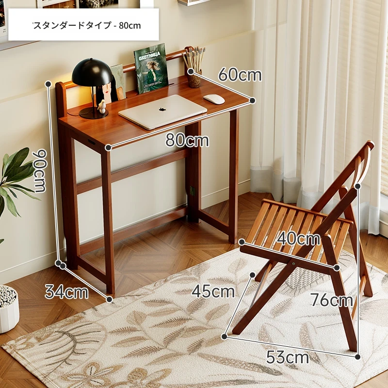 【ベーシックモデル】80CM折りたたみデスク+椅子-ウォールナット色【厳選素材 ✅厚手サポート】
