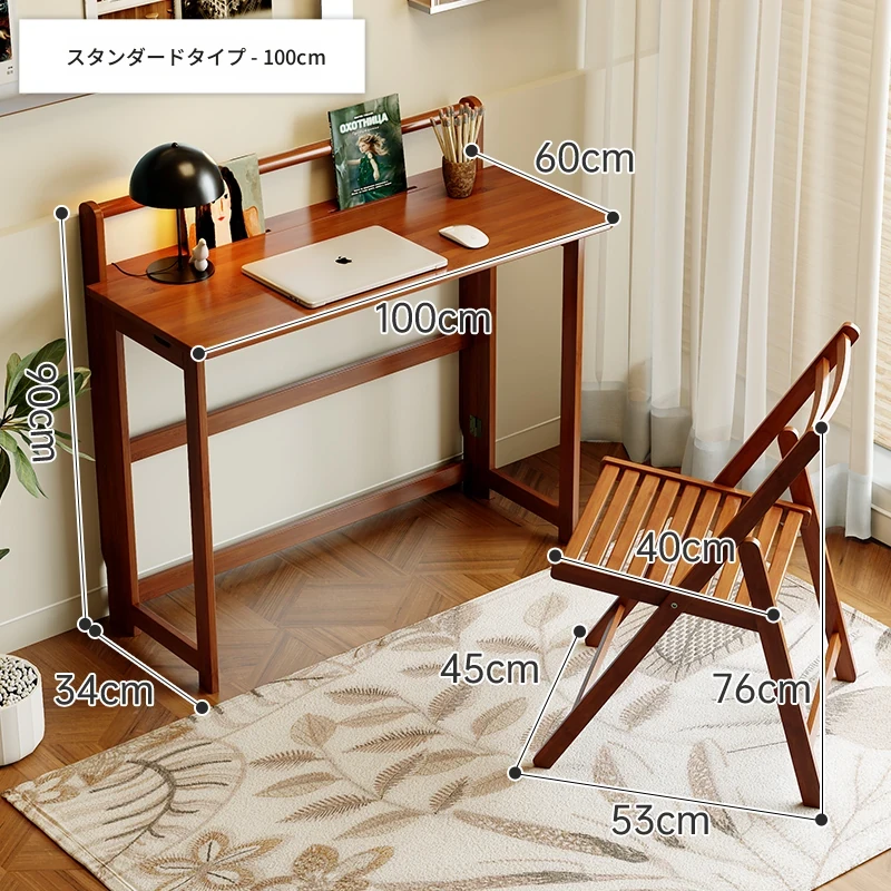 【ベーシックモデル】100CM折りたたみデスク+椅子-ウォールナット色【厳選素材 ✅厚手サポート】