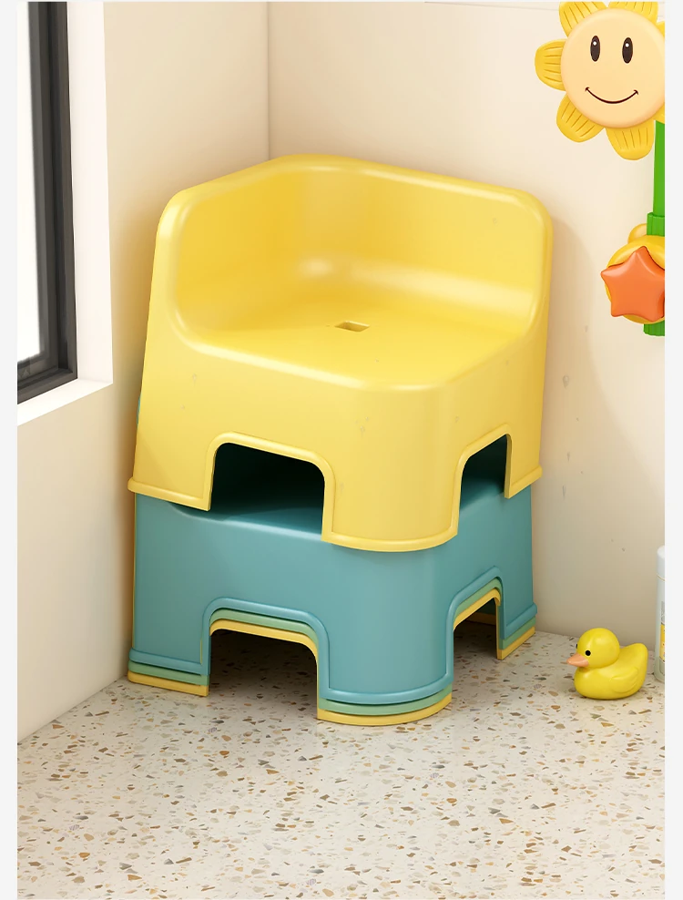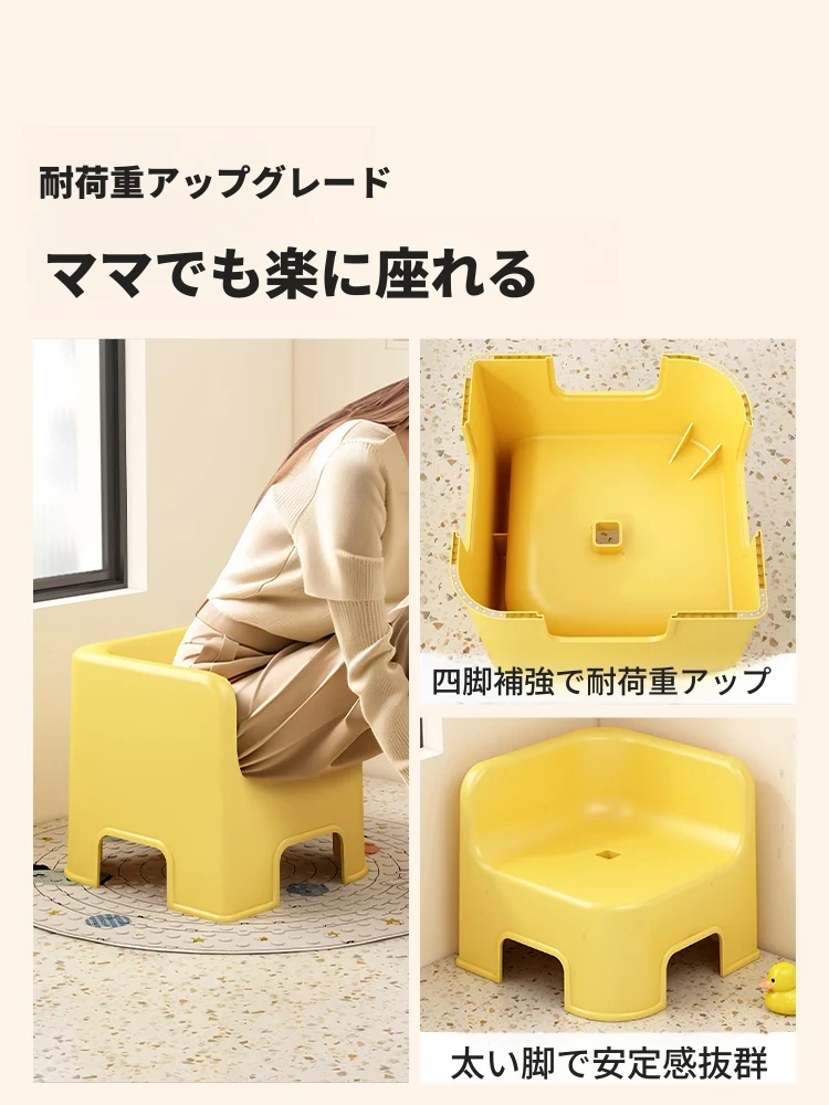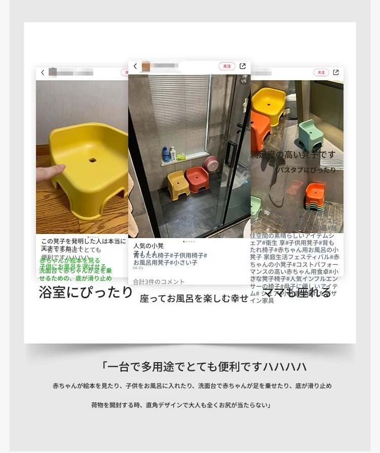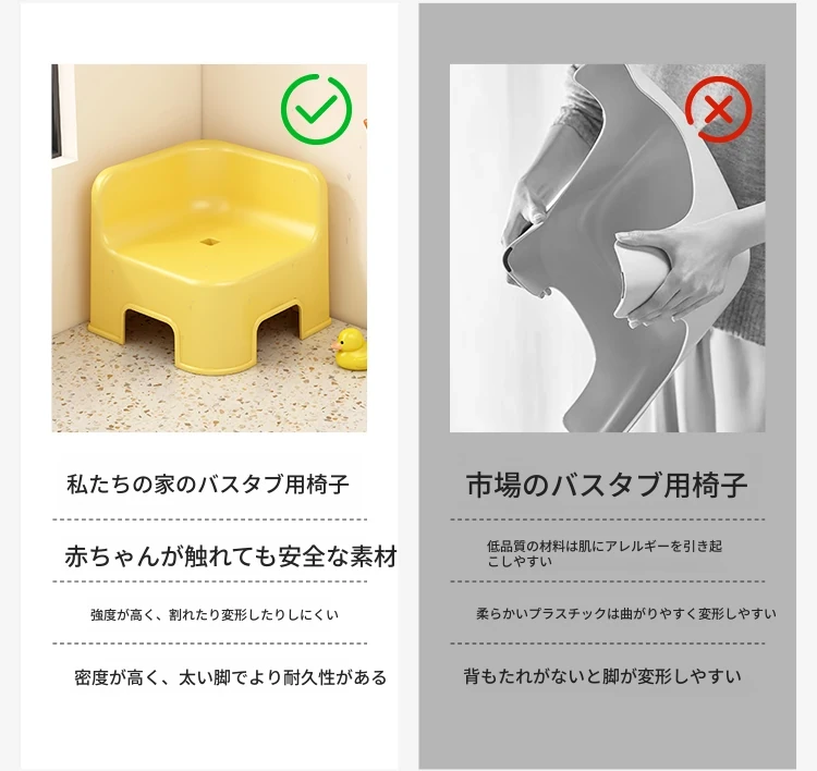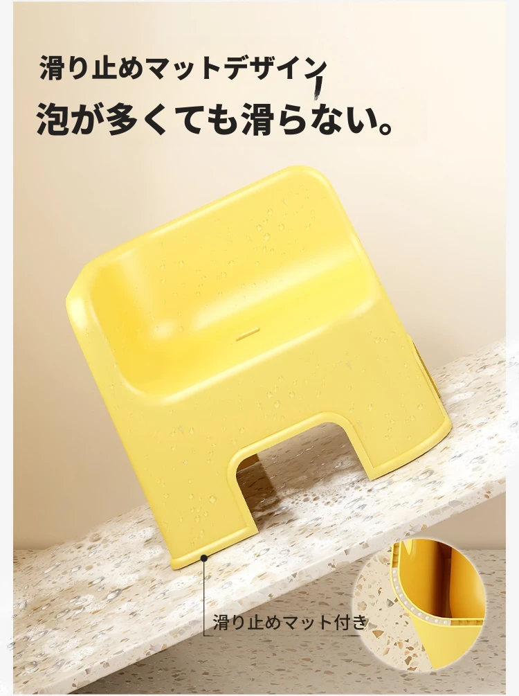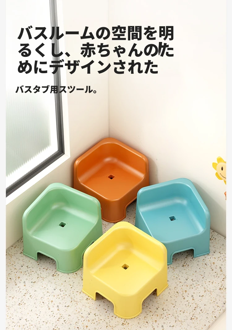 子供用お風呂イス|おしゃれで丈夫なバスルーム専用の低い椅子|重ねて収納可能な厚手プラスチック製の四角いスツール|安全で快適なお風呂タイムを実現!