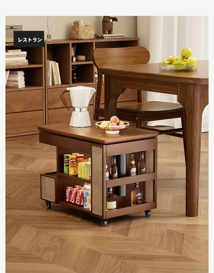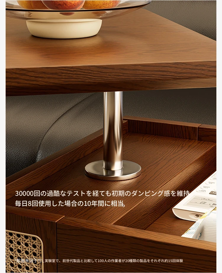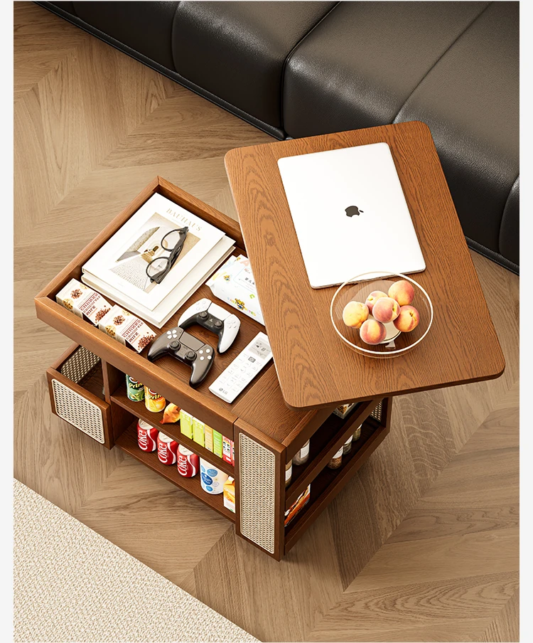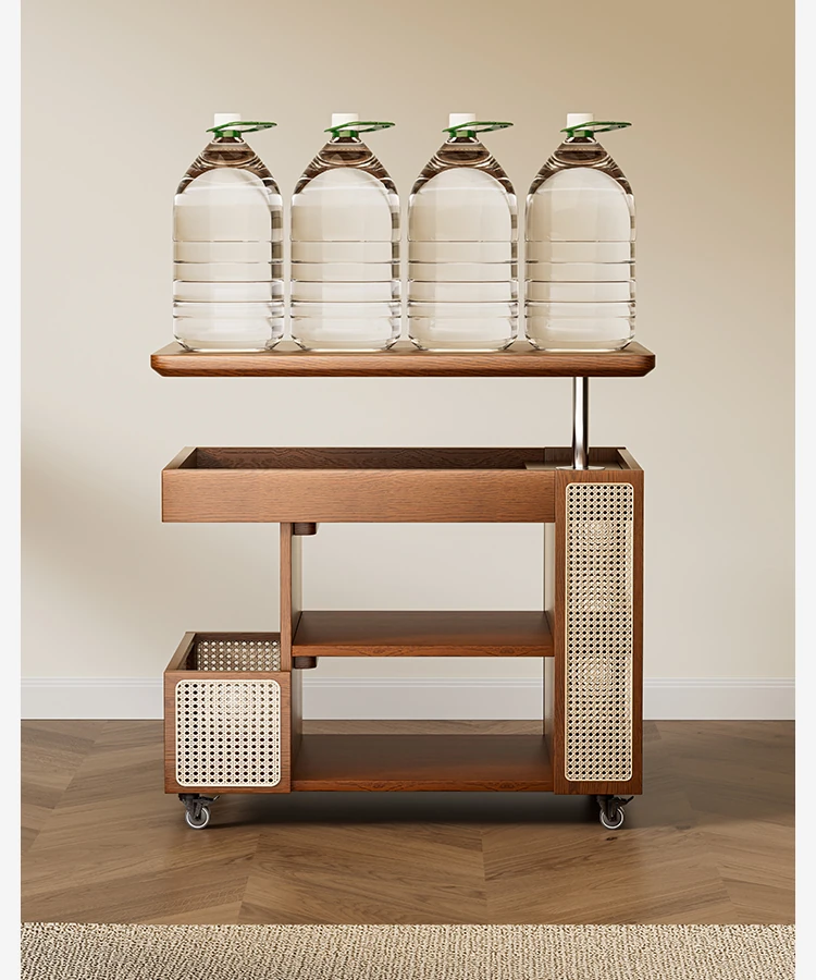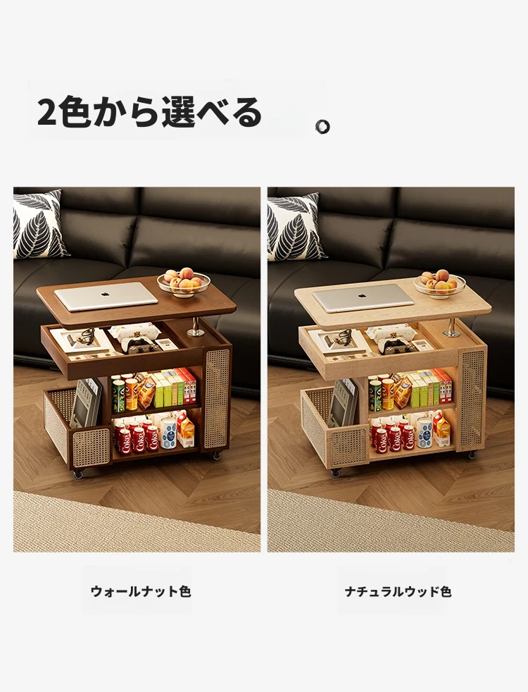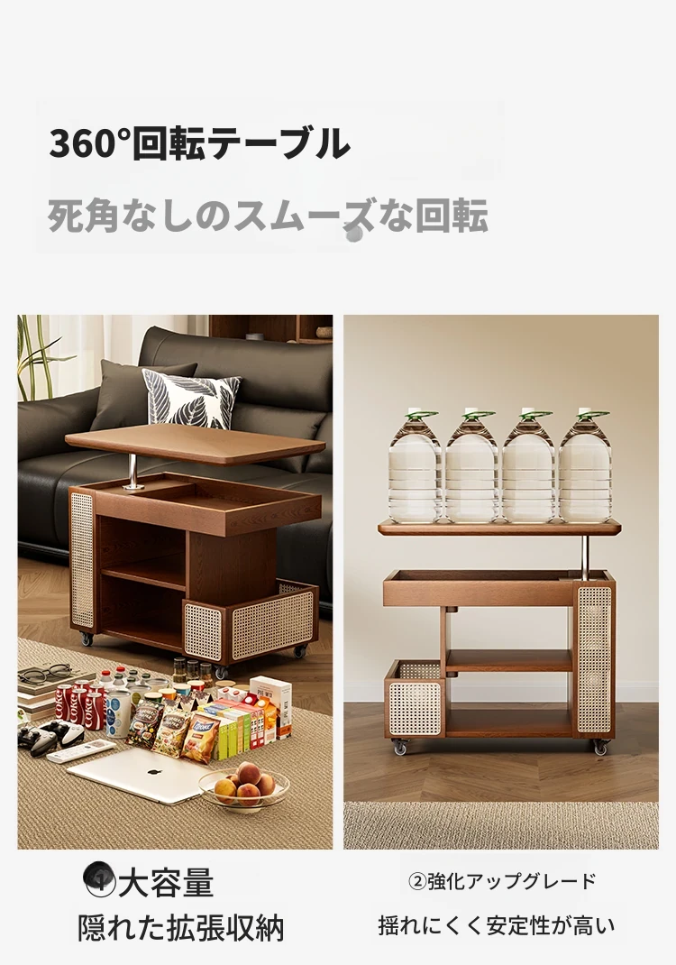 昇降式実木製移動式ティーテーブル - 小型住宅にぴったりのリビングルーム用サイドキャビネット・ソファサイドテーブル・コンパクトなバスサイドテーブル。魅力的なデザインで、スペースを有効活用!