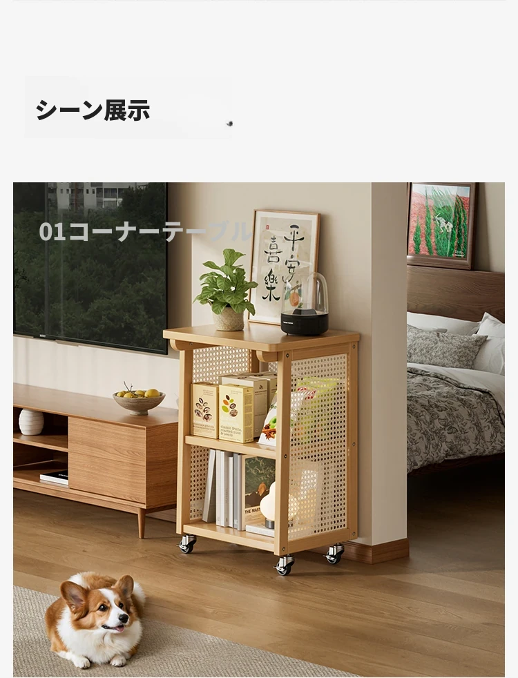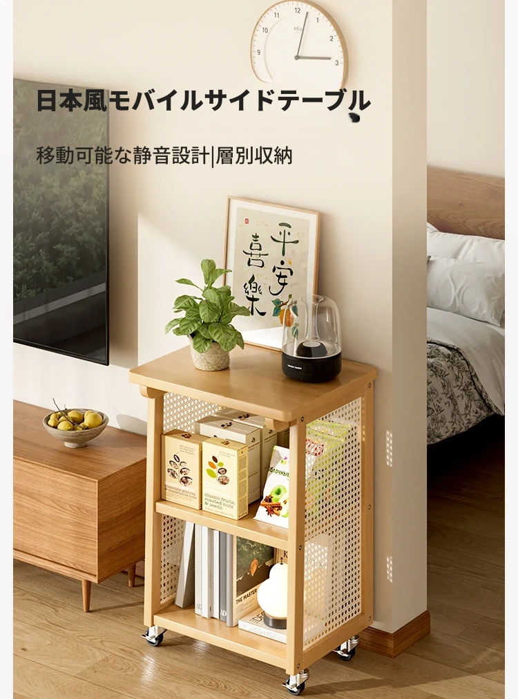 可動式サイドテーブル - リビング、バルコニー、ベッドサイドに最適!小型ティーテーブルや収納ラックとしても使える便利なサイドテーブル。おしゃれで機能的、スペースを有効活用します!