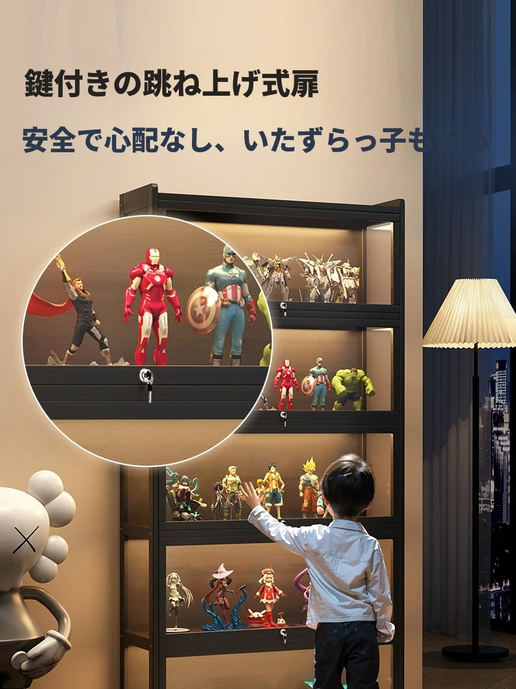 子供のためのロック付きアクリル透明収納ボックス!積み木やフィギュアを美しくディスプレイできるフロアスタンド型のおもちゃキャビネット。整理整頓も楽しくなり、お部屋がスッキリ!
