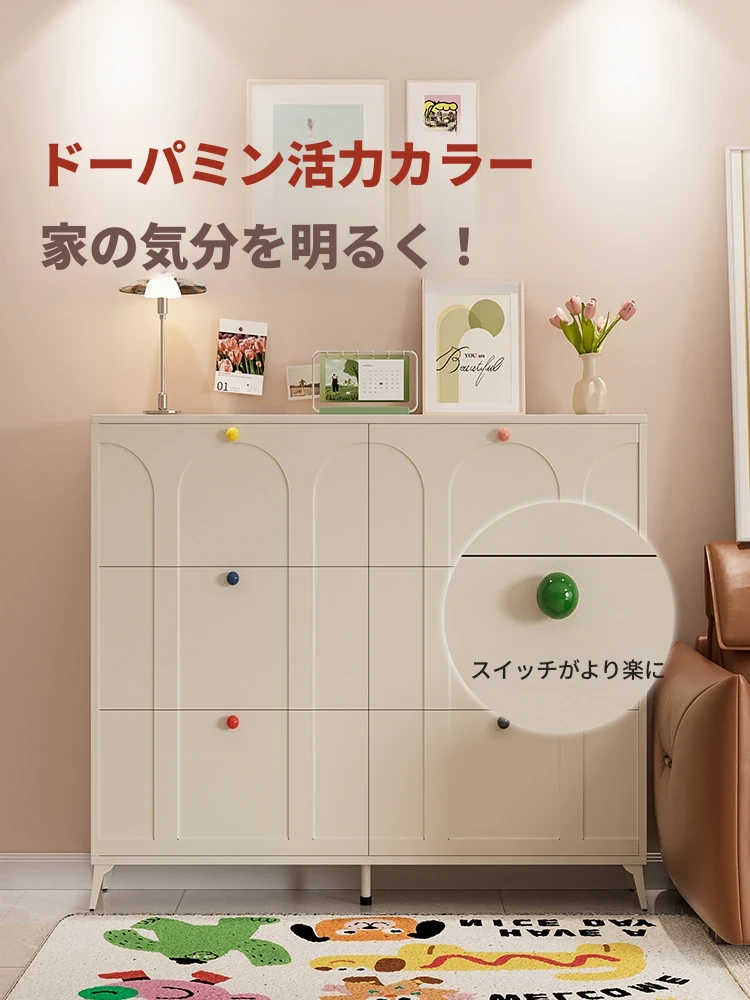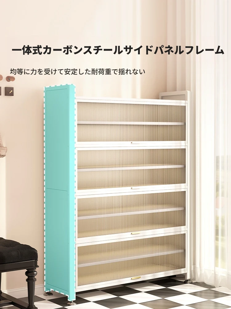 超薄シューズキャビネット - 狭い玄関にピッタリ!新型のコーナーシューズラックは、埃を防ぎ、スタイリッシュなデザインで廊下をスッキリ整頓。限られたスペースを有効活用できる理想的な収納ソリューションです。