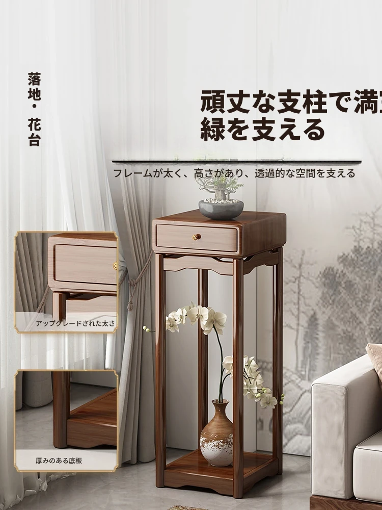 2024新作!中式フロア型花台 - 高級無垢材使用、リビングやバルコニーに最適な多肉植物用スタンド。おしゃれで機能的なデザインで、あなたの空間を華やかに彩ります!