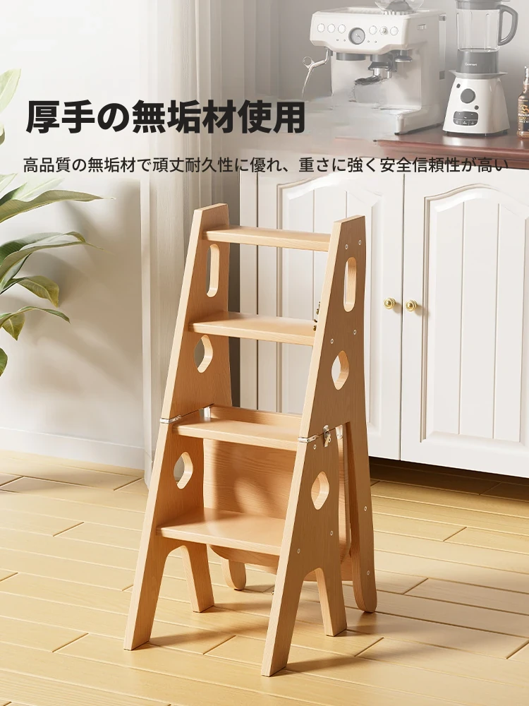 折りたたみ式木製梯子椅子 - 室内で使える多機能ハシゴチェア!伸縮可能で、登りやすさ抜群!省スペース設計で収納も簡単。家の中でのさまざまなシーンで大活躍!